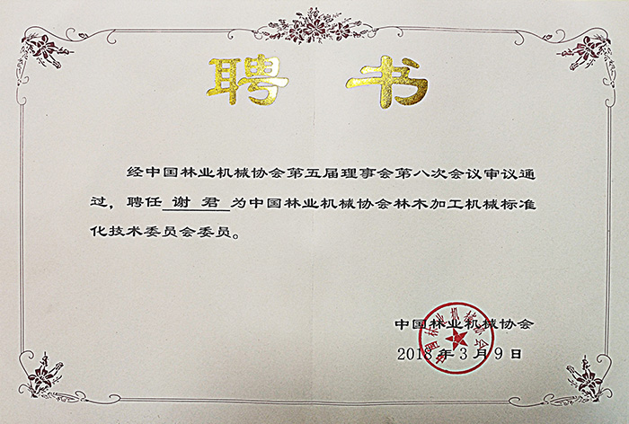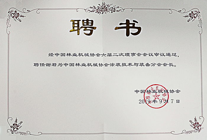 • 林機協(xié)會涂裝技術(shù)與裝備分會會長聘書