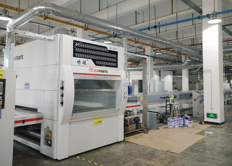 工藝要求 UV底漆、水性色漆、水性LED-UV面漆 產(chǎn)品種類 膜壓PVC櫥柜門板、定制衣柜、線條 產(chǎn)線數(shù)量 4條 設(shè)備特色 LED-UV固化系統(tǒng)、立體干燥房配1臺(tái),待干45分鐘 生產(chǎn)產(chǎn)能 UV底漆噴涂線:1800m2/8h ( 生產(chǎn)員3人/線)