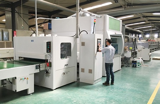 設備特色 UV無溶劑底漆,微波10分鐘干燥水性面漆,達到PU相同質(zhì)感