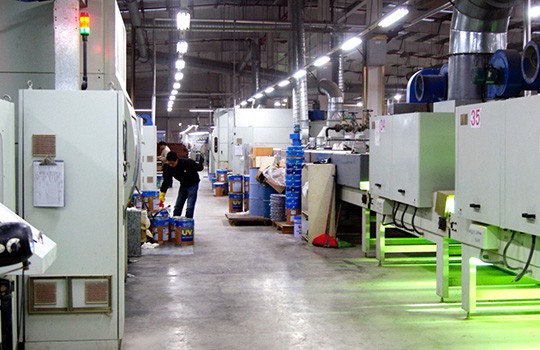 設(shè)備特色 無溶劑UV底漆自動(dòng)連線、PU面漆表干連線。