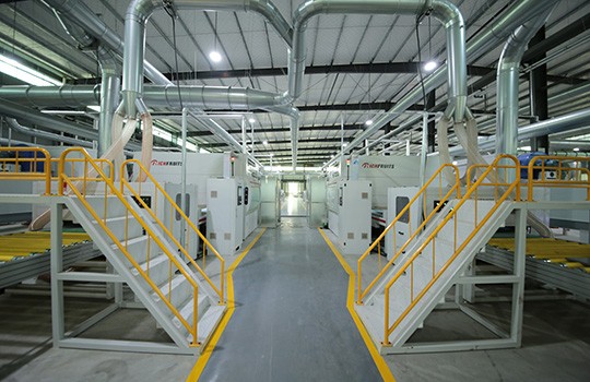 設備特色 帶回收的環(huán)保PU漆及立體干燥房,門扇雙面噴漆+立體干燥。