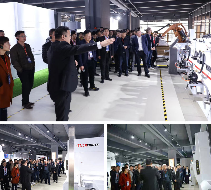 博碩董事長謝君女士、廣東省定制家居協(xié)會會長索菲亞副總裁張挺,全國工商聯(lián)家具裝飾商會執(zhí)行會長張傳喜、土耳其木工設備優(yōu)秀經銷商Cem、上海冠盛木工機械有限公司董事長陳培賢、越南理研聯(lián)營RIKEN總經理丁弈瑋、馬來西亞良勝木家具機械有限公司董事長梁韶文、印尼BSA公司董事長Bob一共8位產業(yè)鏈大咖共同開啟“涂裝一體化智能體驗館”。