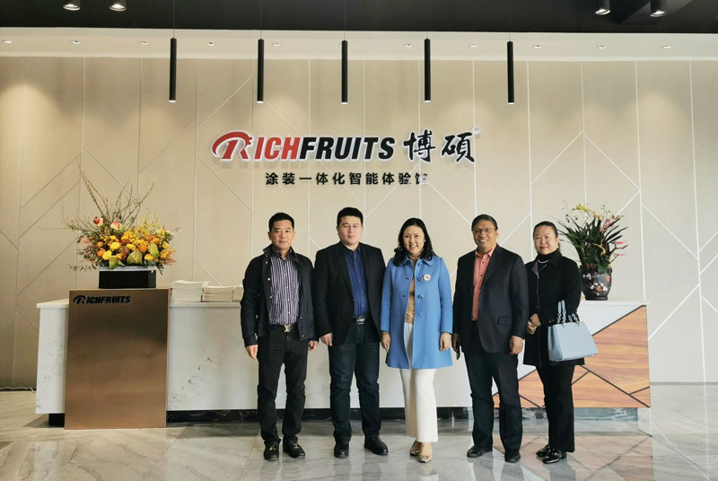 博碩涂一體化智能體驗館的開館不僅得到了行業(yè)內的高度認可,政府也給予了厚望,12月6日下午,倫教鎮(zhèn)黨工委書記盧德全書記,黨工委委員、辦事處副主任、倫教經科局局長羅冠明主任、倫教經科局副局長李玉彥局長,環(huán)保局局長梁啟滔局長、周錫賢副局長一行到博碩“涂裝一體化智能體驗館”指導工作,深入了解涂裝智能化。