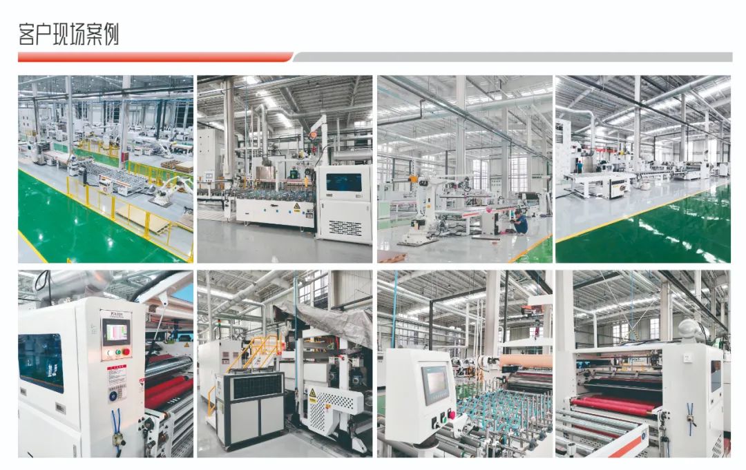 可片材、可卷材混合生產(chǎn)。通用PET、PETG、PP、PVC、CPL、防火板、亞克力、鋁箔、SPC等飾面材,利用PUR膠水均勻平貼或包覆到板材表面。 通用于包覆種類(lèi)的產(chǎn)品,比如:硅酸板、水泥纖維板、門(mén)芯板多層墻板等材料進(jìn)行PUR膠水涂布后包覆各種柔性貼材。
