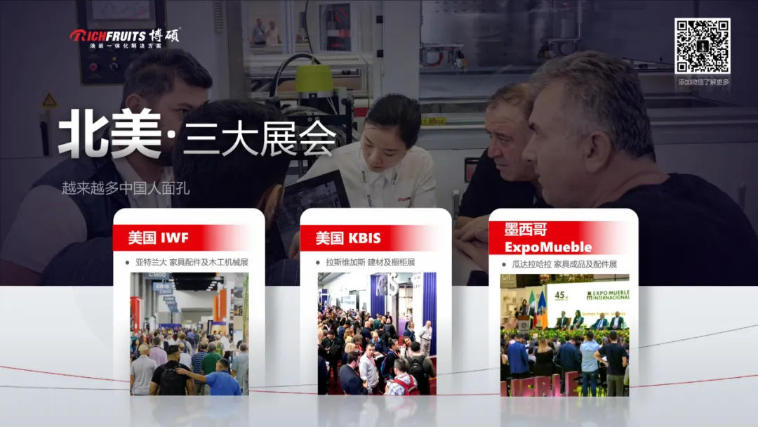 博碩在北美參加了三個展會,2月份在美國拉斯維加斯的建材和櫥柜展,博碩的客戶就有24家參展。今年8月份美國的IWF, 全美最大的木工機械展,也不乏中國企業(yè)的身影,墨西哥瓜達拉哈拉木工機械以及家具輔料展,