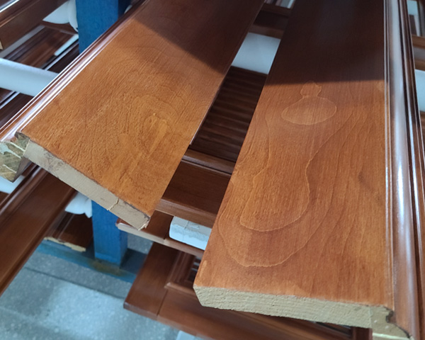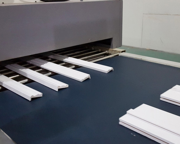 091300mm自動(dòng)噴漆線適用于門框線、畫框、舍槽企口板、門窗配件、家具配件踢腳線、地板、塑鋼型材和木塑線條等條型工件的三個(gè)表面,針對(duì)UV和水性油漆等各種油漆進(jìn)行連續(xù)自動(dòng)噴漆。