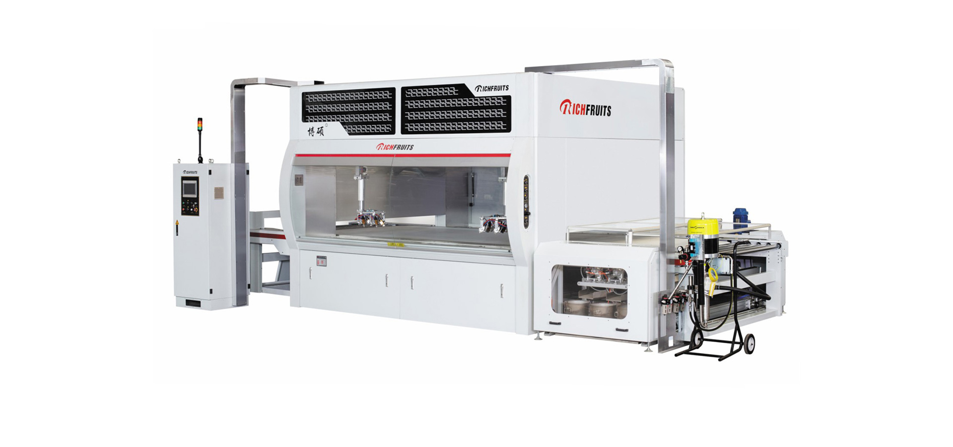 適用于實(shí)木家具、實(shí)木復(fù)合門(mén)、美式櫥柜、套房家具、衛(wèi)浴柜、展示柜、工藝品等板式工件的平面和四個(gè)側(cè)邊,針對(duì)UV、PU、AC、NC和水性漆等,進(jìn)行高質(zhì)量效果連續(xù)自動(dòng)噴漆,實(shí)現(xiàn)節(jié)能、環(huán)保和減少人工,提高產(chǎn)品質(zhì)量和生產(chǎn)效率。