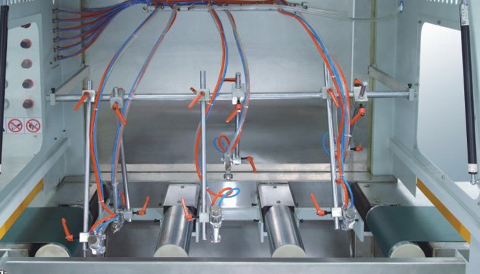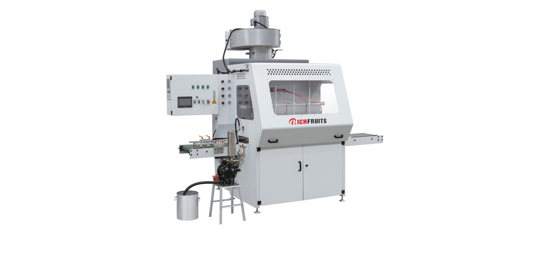 自動噴漆機(jī) 300MM 線條適用于門框線、畫框、舌槽企口板、門窗配件、家具配件、踢腳線、地板、塑鋼型材和木塑線條等條型工件的三個(gè)表面,針對PU、NC、PVC、UV和水性油漆等各種油漆進(jìn)行連續(xù)自動噴漆。自動噴槍標(biāo)準(zhǔn)配置采用原裝進(jìn)口日本巖田自動空氣噴槍,噴漆室輥輥涂采用單邊懸掛結(jié)構(gòu),配刮刀。