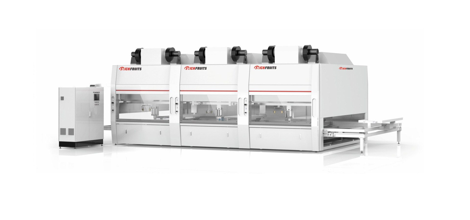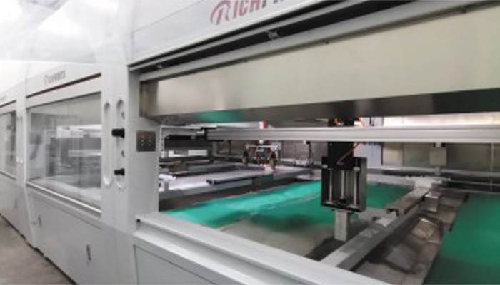 B21300MM 三工位木門(mén)噴漆機(jī)適用于木門(mén)雙面懸空噴漆,采用數(shù)控往覆噴漆模式,將整門(mén)噴漆的動(dòng)作拆解為三個(gè)噴漆工位:第一個(gè)工位噴木門(mén)的A面,第二個(gè)工位噴邊部和凹凸線以及自動(dòng)翻面,第三個(gè)工位噴B面;三工位同時(shí)工作,可以將木門(mén)控制在45秒之內(nèi)完成一扇門(mén)的噴漆。無(wú)托架懸空支撐結(jié)構(gòu),木門(mén)懸空長(zhǎng)度自動(dòng)調(diào)節(jié),配光幕掃描系統(tǒng)掃描木門(mén)的尺寸和造型,數(shù)控往覆噴涂模式,可以進(jìn)行十字方式噴涂。