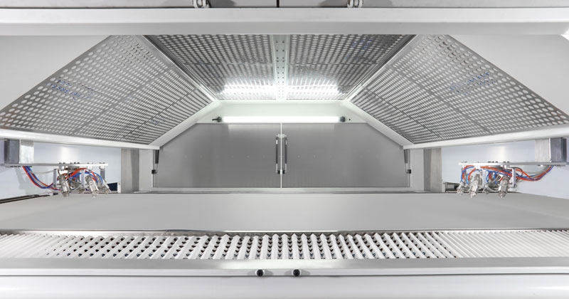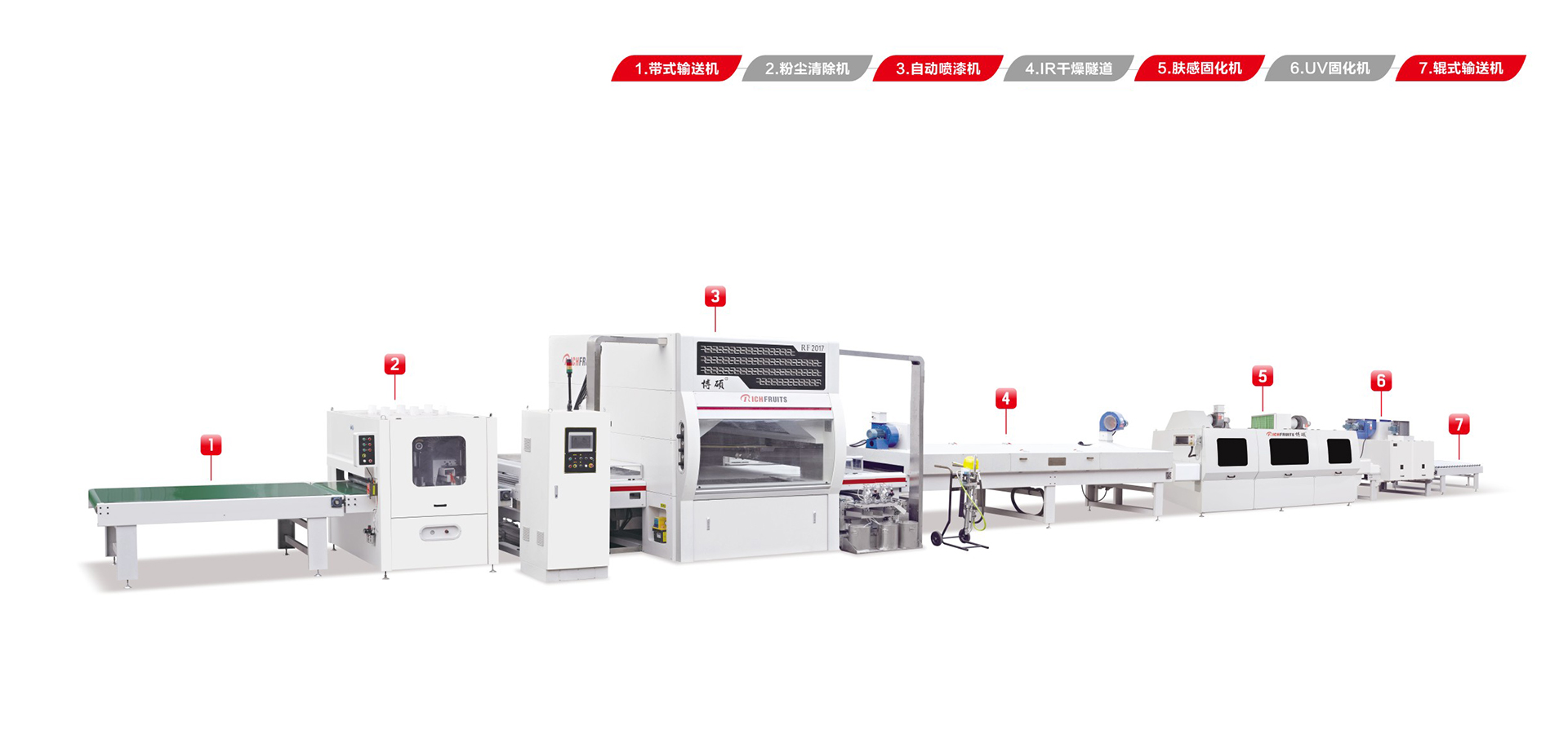 適用于板式家具、實(shí)木門、櫥柜門、工藝品、裝飾板、硅酸鈣板、玻鎂板、水泥纖維板的板式加工件的平面和四個(gè)側(cè)邊進(jìn)行高質(zhì)量、大批量連續(xù)噴漆。