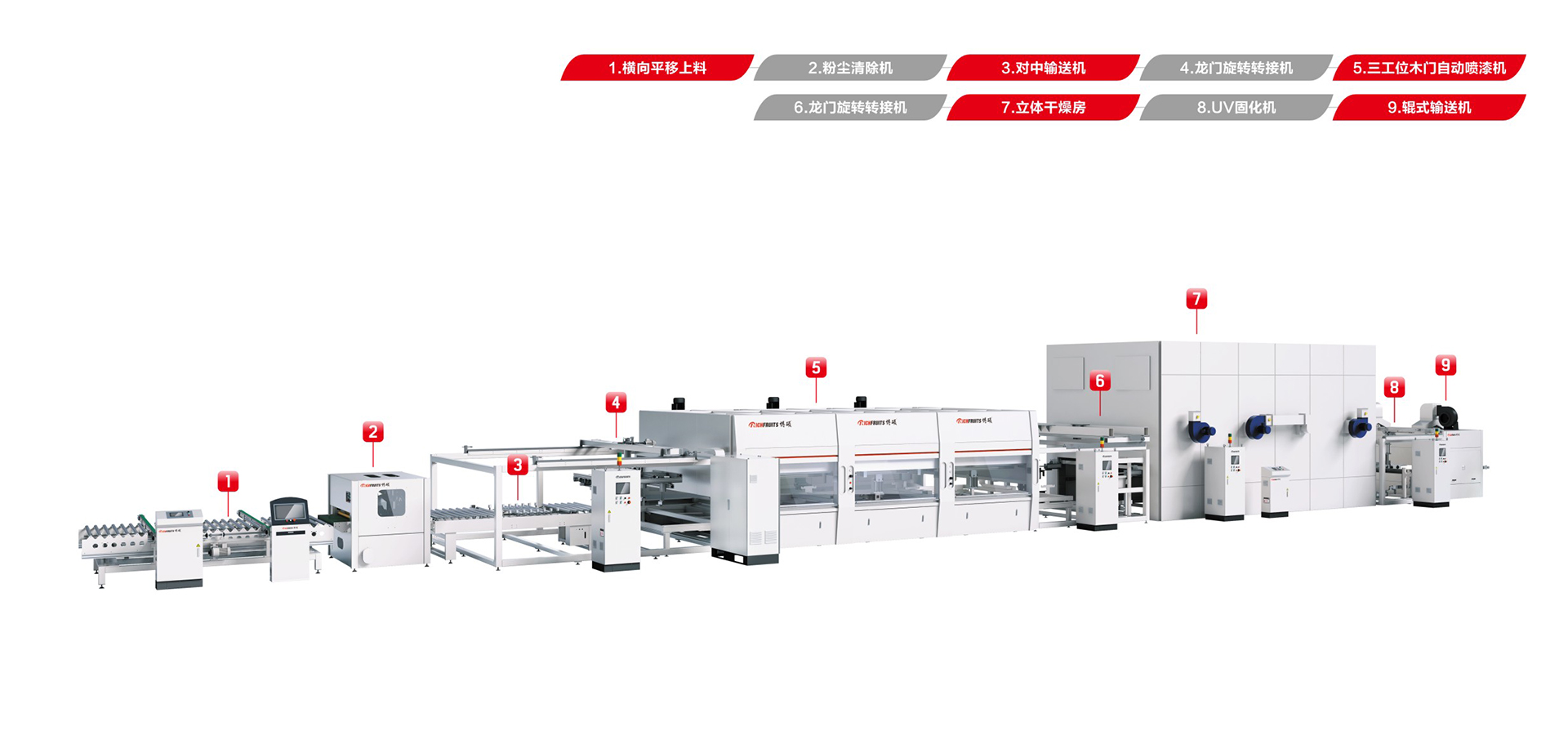 適用于板式家具、實(shí)木門、櫥柜門、工藝品、裝飾板、硅酸鈣板、玻鎂板、水泥纖維板的板式加工件的平面和四個(gè)側(cè)邊進(jìn)行高質(zhì)量、大批量連續(xù)噴漆。