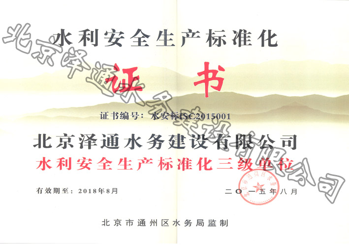 2015年水利安全生產(chǎn)標準化三級單位證書